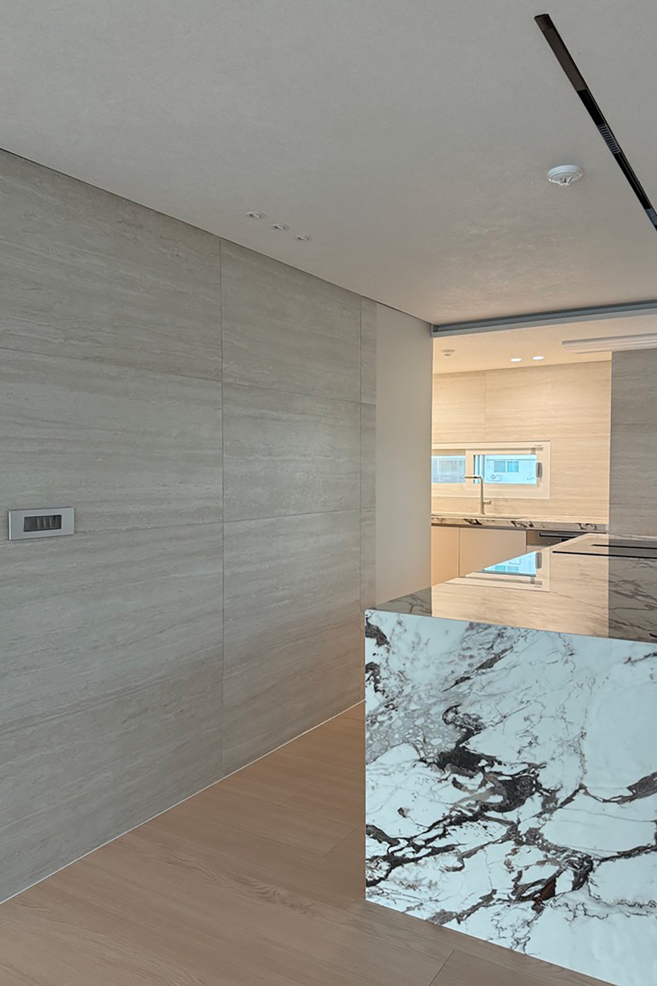 대치동 선경-1st 차분한 톤과 조명으로 재구성한 대치동 아파트 리노베이션 거실, 주방, 복도와 수납 공간 전반을 밝은 우드 톤과 섬세한 간접조명으로 정리해 일상의 배경이 되는 집으로 재구성했습니다. 주방에는 대리석 마감의 아일랜드와 수납장을 새로 구성해, 조리와 식사가 자연스럽게 이어지는 중심 공간으로 계획했습니다. Project Year | 2025 Category | Interior Location | 서울 강남구 대치동 Date: 2025 Tags: Design Modern Share: fb tw in pin
